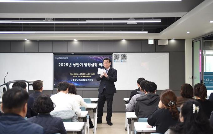 (아름다운교육신문) 충청남도서산교육지원청은 지난 18일 서산 AI교육체험센터(서동초등학교)에서 ‘2025년 상반기 행정실장 회의’를 성황리에 개최했다.