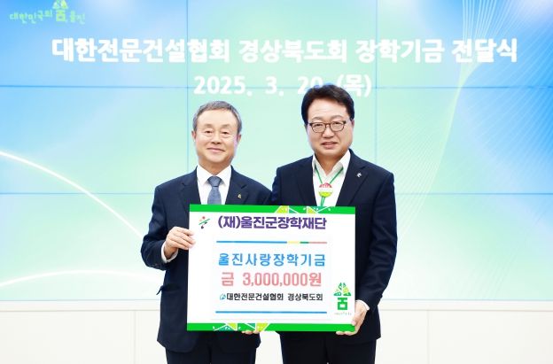(아름다운교육신문) (재)울진군장학재단은 대한전문건설협회 경상북도회에서 울진사랑 장학기금 3백만 원을 기탁받았다.
