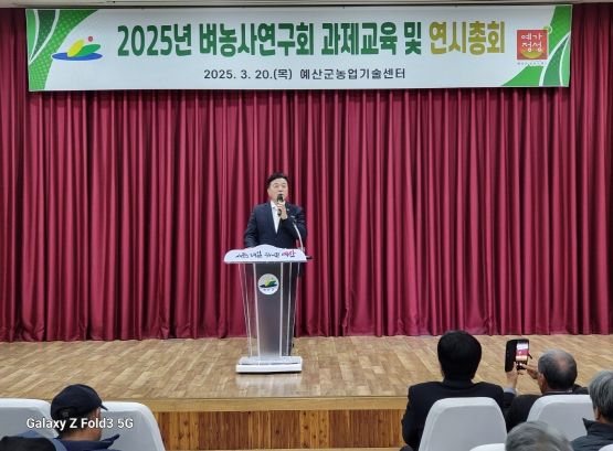 (아름다운교육신문) 예산군농업기술센터는 지난 20일 농업기술센터 교육관에서 최재구 군수, 장순관 예산군의장, 방한일 도의원, 벼농사연구연합회 회원 110여명이 참석한 가운데 2025년 예산군벼농사연구연합회 과제교육 및 연시총회를 개최했다.