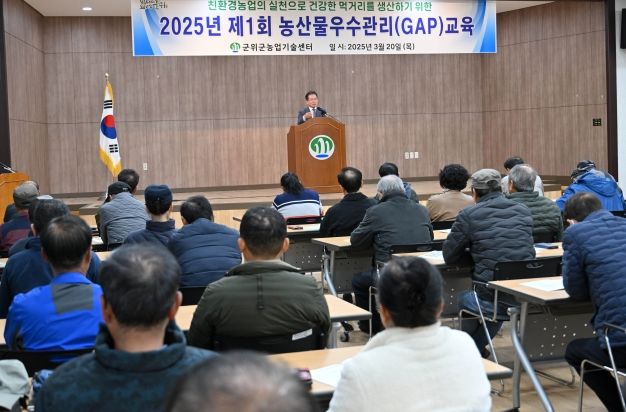 (아름다운교육신문) 군위군은 친환경 농업의 확산으로 지속 가능한 농업환경을 만들어 나가는데 주력하기 위해 3월 20일 농업기술센터에서 2025년도 제1회 농산물우수관리(GAP) 교육을 실시했다.