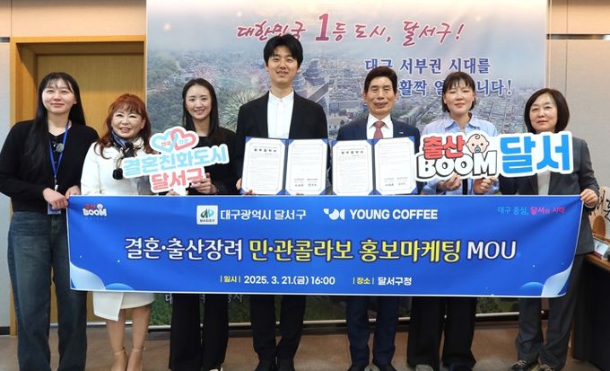 이태훈 달서구청장은 “MZ세대가 공감하고 자발적으로 참여할 수 있는 결혼·출산 장려 문화를 확산시키기 위해 이번 협약을 마련했다”며 “앞으로도 다양한 민관 협력 모델을 통해 젊은 세대가 체감할 수 있는 실질적인 인구 정책을 펼쳐 나가겠다”고 밝혔다.