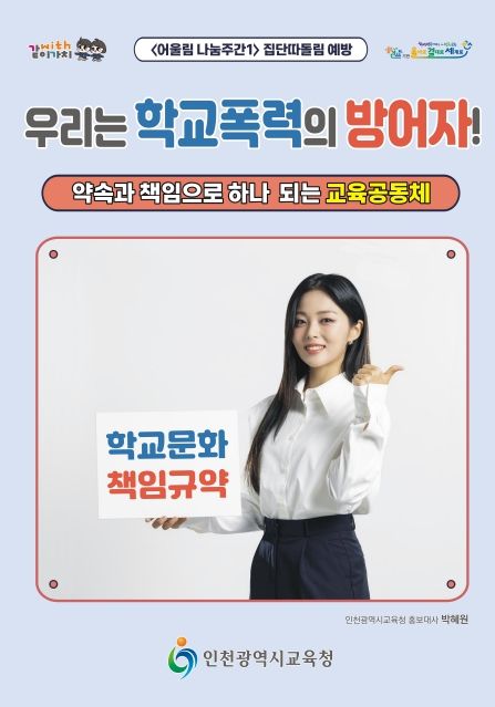 인천시교육청 관계자는 “교육공동체가 주체가 되어 학교폭력 예방 활동을 할 수 있도록 적극 지원하고, 학교, 가정, 지역사회가 협력하여 학교폭력의 방어자로서 책임감을 가지고 실천할 수 있도록 노력하겠다”고 밝혔다.