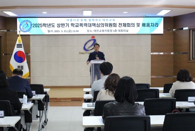 (아름다운교육신문) 충청남도태안교육지원청은 지난 21일 청사 3층 대회의실에서 ‘2025학년도 상반기 학교폭력대책심의위원 전체회의 및 배움자리’를 개최했다.