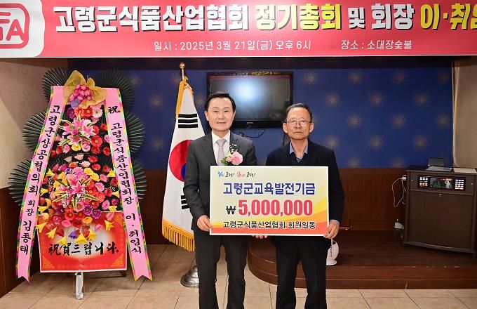 (아름다운교육신문) 고령군식품산업협회는 지난 3월 21일 고령군식품산업협회 2025년 정기총회에서 고령군 교육발전기금 500만원을 기탁했다.