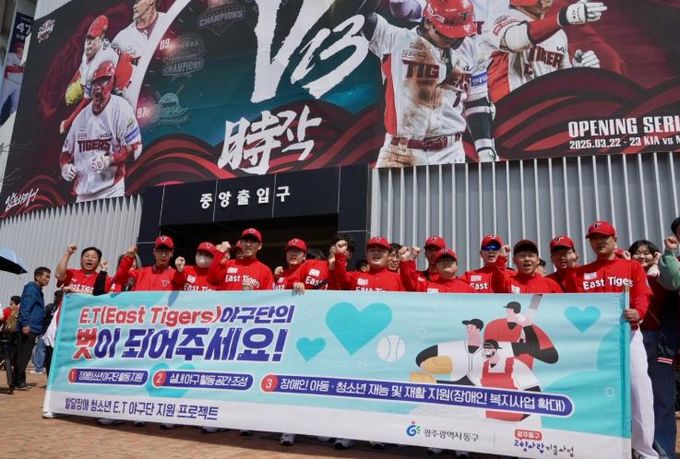 (아름다운교육신문) 광주 동구는 지난 22일 광주 기아챔피언스필드에서 열린 2025 한국프로야구 개막식에서 ‘광주 동구 발달장애인 E.T 야구단’이 공식 개막 선언하며 야구를 통한 포용과 희망의 메시지를 전했다고 밝혔다.