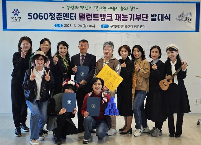 (아름다운교육신문) 대전 유성구는 24일 구암평생학습센터 청춘엔터에서 신중년 재능기부단 ‘5060청춘엔터 탤런트 뱅크’ 발대식을 개최했다.
