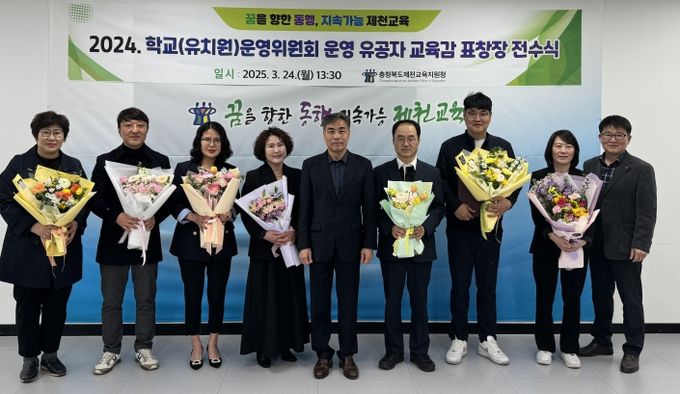 표창 수상자는 제천교육 발전을 위해 헌신한 학교운영위원회 위원장 및 업무담당자로 송학초 박남화 위원장, 용두초 백영숙 위원장, 화산초 김우정 위원장, 두학초 안인옥 위원장, 제천중 김영록 위원장, 내토중 박준규 위원장, 제천디지털전자고 김성현 위원장, 제천고 홍석호 위원장, 세명고 박봉춘 위원장, 신백초 김미향 행정실장으로 총 10명이다.