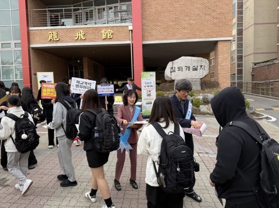 (아름다운교육신문) 충청북도청주교육지원청은 3월 24일 안전한 학교문화 조성을 위한 생명존중 등교맞이 캠페인을 운영했다.