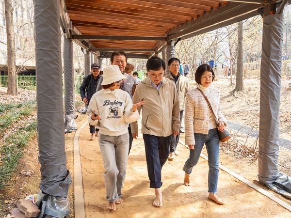 진 구청장은 주민들과 함께 맨발로 전 구간을 걸으며 이용 시 불편한 점은 없는지 직접 챙겼다.