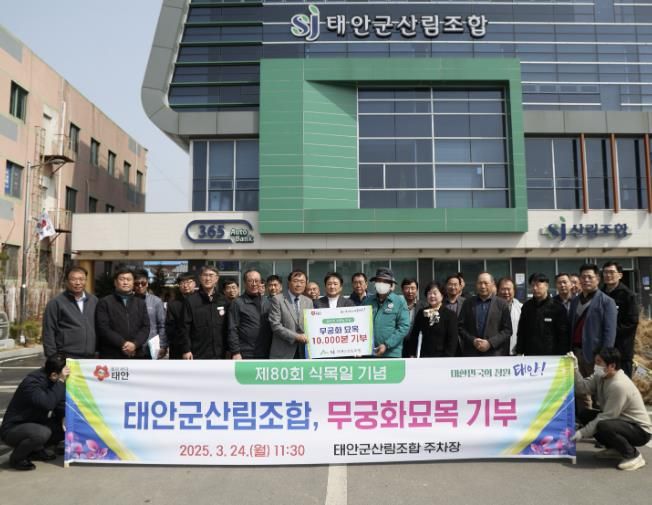 태안군에 따르면, 태안군산림조합은 지난 24일 태안군산림조합 주차장에서 최우평 조합장과 가세로 군수, 태안군이장단협의회 관계자 등이 참석한 가운데 기탁식을 갖고 무궁화 묘목 1만 본을 군에 전달했다.