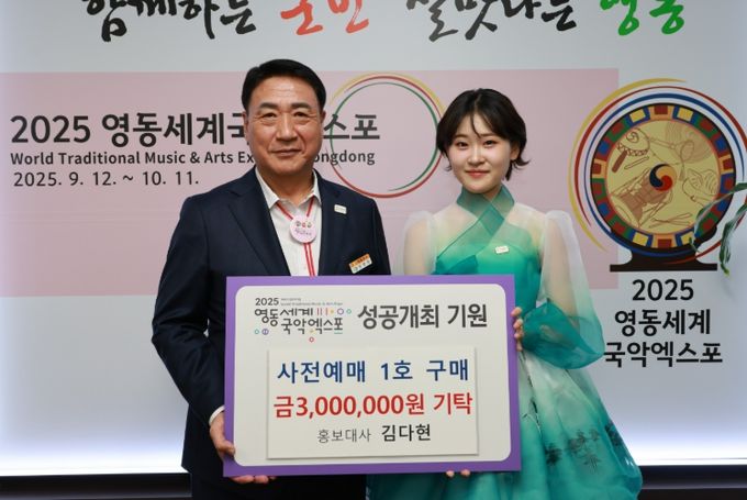 (아름다운교육신문) ‘국악트롯요정’ 김다현이 2025영동세계국악엑스포의 입장권 기부행렬에 동참했다.