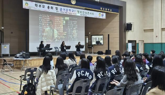 (아름다운교육신문) 안양 평촌중학교는 21일 학부모총회에서 신입생과 학부모가 함께 참여하는 특별 프로그램인 ‘행복인성콘서트’를 성공적으로 개최했다. 이번 행사는 2025년 인성교육 실천학교로서 첫번째 공식행사로 진행됐다.