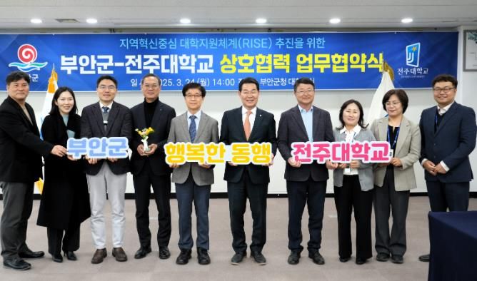 군과 전주대는 지난 24일 부안군청에서 업무협약(MOU)을 체결하고 지역사회와 대학이 상생 발전할 수 있는 기반을 구축하기로 뜻을 모았다.
