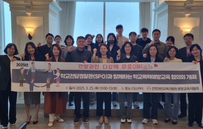 (아름다운교육신문) 안양과천교육지원청은 3월 25일 '2025 안양과천 학교전담경찰관(SPO)과 함께하는 학교폭력예방 협의회'를 개최하여 유관기관 관계자 등 총 25명이 참석했다.