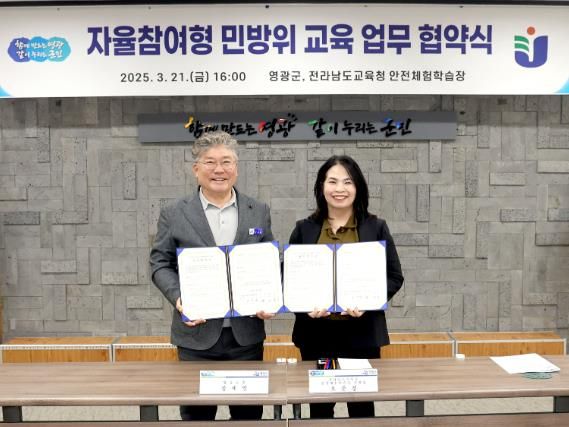 이번 협약은 법성면에 소재한 전라남도교육청안전체험학습장이 행정안전부 민방위 교육 인정 안전체험관으로 지정됨에 따른 상호 협력의 세부내용을 규정하기 위함이라고 한다.