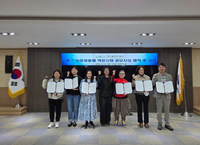 (아름다운교육신문) 부산 북구는 지난 24일, 구청 중회의실에서 북구 마을공동체 역량강화 공모사업에 선정된 단체들과 협약을 체결하고 사전 교육을 실시했다고 밝혔다.