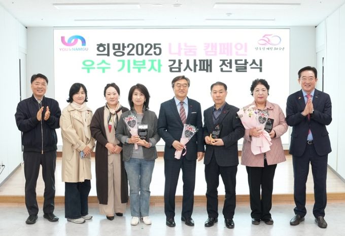 (아름다운교육신문) 부산 남구는 지난 25일 희망2025 나눔 캠페인 우수 기부자를 대상으로 감사패 전달식을 진행했다.