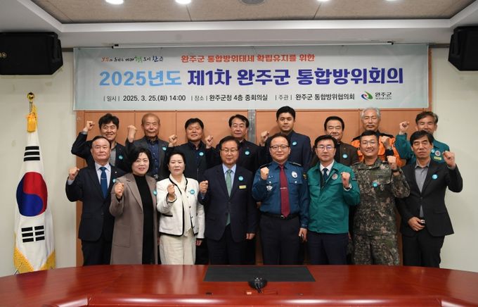 (아름다운교육신문) 완주군 통합방위협의회가 25일 군청 중회의실에서 의장인 유희태 완주군수를 비롯해 유의식 군의회 의장 등 통합방위협의회 위원들이 참석한 가운데 2025년도 제1차 완주군 통합방위회의를 개최했다.