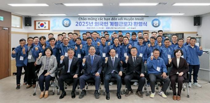 (아름다운교육신문) 임실군이 지난 25일 베트남 MOU 계절근로자 42명이 입국함에 따라 계절근로자 환대를 위해 심 민 군수, 장종민 군의회 의장 및 의원들이 참석한 가운데 군청 농민교육장에서 환영식을 개최했다.