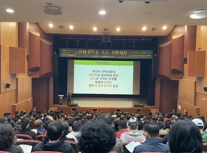 (아름다운교육신문) 순천시는 지난 24일 문화건강센터 다목적홀에서 주민자치위원과 주민 등 300여 명이 참석한 가운데 주민주도의 마을문제 해결을 위한 주민자치 역량강화 교육을 실시했다고 밝혔다.