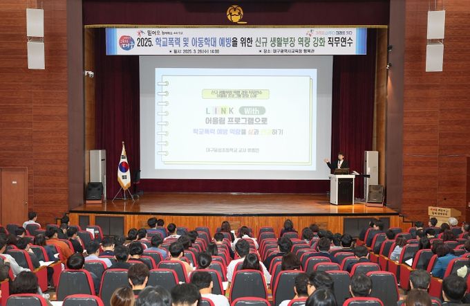 (아름다운교육신문) 대구시교육청은 3월 26일 오후 2시부터 행복관에서 학생들이 안심하고 교육받을 수 있는 환경을 조성하기 위해 신규 생활부장교사 250여 명을 대상으로 ‘2025. 학교폭력・아동학대 예방을 위한 역량 강화 직무연수’를 운영한다.