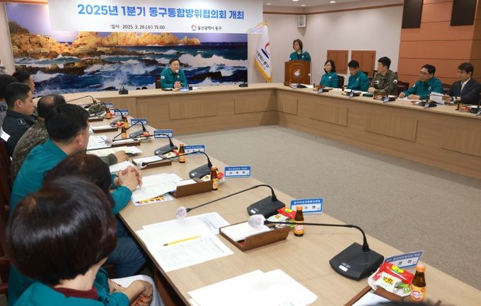 (아름다운교육신문) 울산 동구은 3월 26일 오후 3시 2층 상황실에서 동구통합방위협의회 의장(동구청장 김종훈) 주재로 민·관·군·경·소방 등 위원들이 참여한 가운데 1분기 동구통합방위협의회를 개최했다.