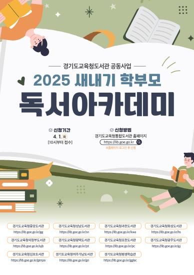 (아름다운교육신문) 경기도교육청도서관이 오는 4월 8일부터 5월 16일까지 도내 전 지역 초중학생 학부모를 대상으로 ‘2025 상반기 새내기 학부모 독서아카데미’를 운영한다.