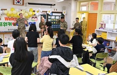 지난 25일 오전, 남덕초등학교에 도착한 미군과 카투사 장병들은 먼저 교장실을 방문해 인사를 나눈 뒤, 교실에서 학생들과 만났다.