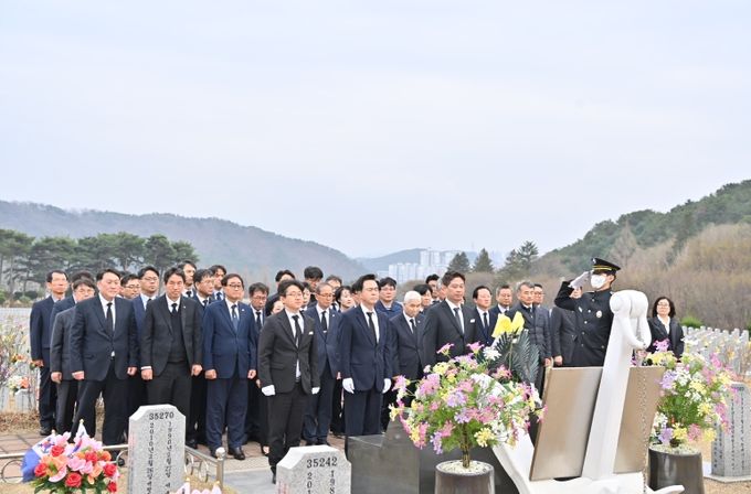 이날 김 지사는 박정주 행정부지사, 전형식 정무부지사, 실·국장, 보훈단체장 등 30여 명과 함께 현충탑에서 헌화·분향하고, 묘역을 찾아 국토 수호를 위해 희생한 호국영령의 고귀한 넋을 기렸다.