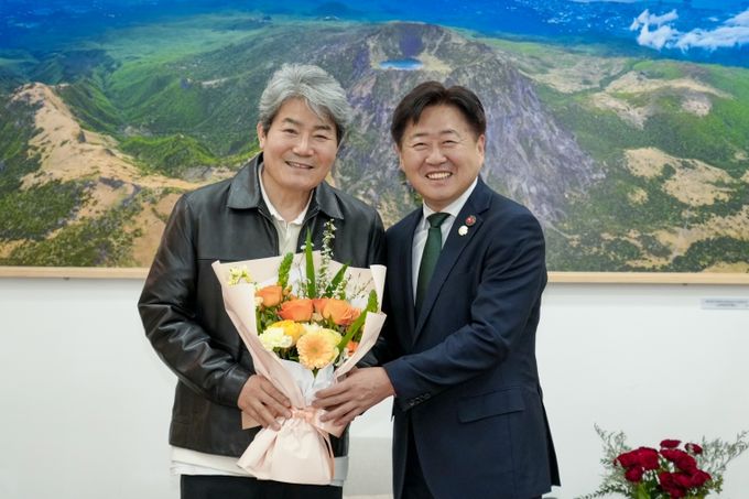 오영훈 제주도지사는 이날 집무실에서 진성 씨를 만나 제주에 대한 사랑과 관심에 감사를 표하고, 많은 국민이 제주고향사랑기부에 동참할 수 있도록 힘써줄 것을 당부했다.