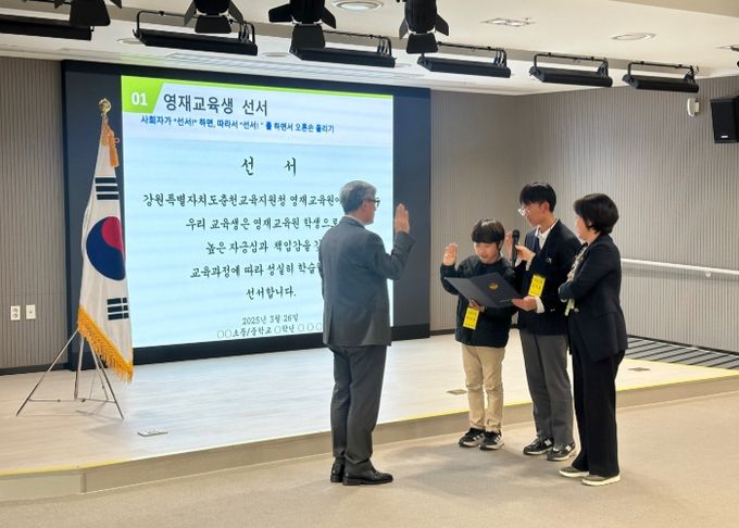 (아름다운교육신문) 춘천교육지원청은 26일 춘천교육지원청 영재교육원에서 영재 학생과 학부모, 교사 120여 명이 참석한 가운데 ‘2025년 춘천교육지원청영재교육원 개강식’을 개최했다.