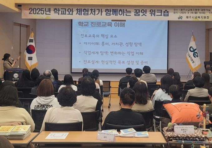 (아름다운교육신문) 제주시교육지원청은 24일 대회의실 등에서 2025년 ‘학교와 체험처가 만나는 꿈잇 공동 연수’ 와 ‘제주시 진로전담교사 상반기 협의회’를 진행했다.