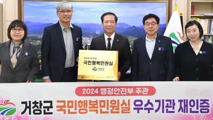 거창군은 지난해 행안부가 주관하는 ‘국민행복민원실’ 우수기관으로 재인증을 획득하고, ‘민원서비스 종합평가’에서도 ‘우수 등급’을 받아 명실상부한 민원 우수기관으로 자리매김했다.