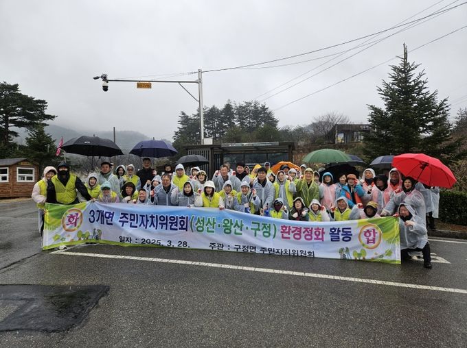 김나경 구정면 주민자치위원장은 “궂은 날씨 속에서도 환경정화 활동에 함께 해주신 왕산면과 성산면 주민자치위원님들께 감사드린다.”라며, “이번 환경정화 활동이 3개면 주민자치위원회 간의 화합을 이룬 자리가 되어서 기쁘다.”라고 말했다.
