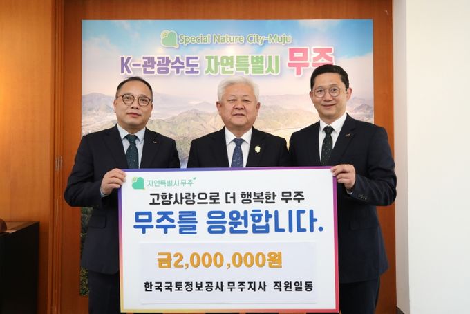 정인영 지사장은 “무주군에서 일하는 직원들 모두 무주가 내 고향이라는 생각, 주민들이 모두 내 이웃이라는 마음으로 지역개발과 군민 재산권 보호에 힘쓰고 있다”라며 “직원들이 한마음으로 모은 고향사랑기부금이 무주발전에 큰 보탬이 되기를 바란다”라고 전했다.