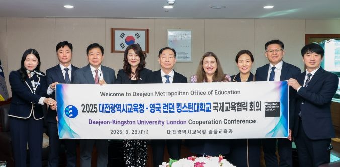 (아름다운교육신문) 대전시교육청은 3월 28일 영국 런던 킹스턴대학교 사무처장단 및 지역 대학과 지속적인 상호 협력 강화를 위한 국제교육협력회의를 시교육청 별관 회의실에서 개최했다고 밝혔다.