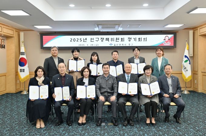 중구는 3월 28일 오후 4시 중구청 중회의실에서 2025년 울산광역시 중구 인구정책위원회 정기회의를 열고 ‘2025년 울산 중구 인구정책 시행계획’을 심의·의결했다.