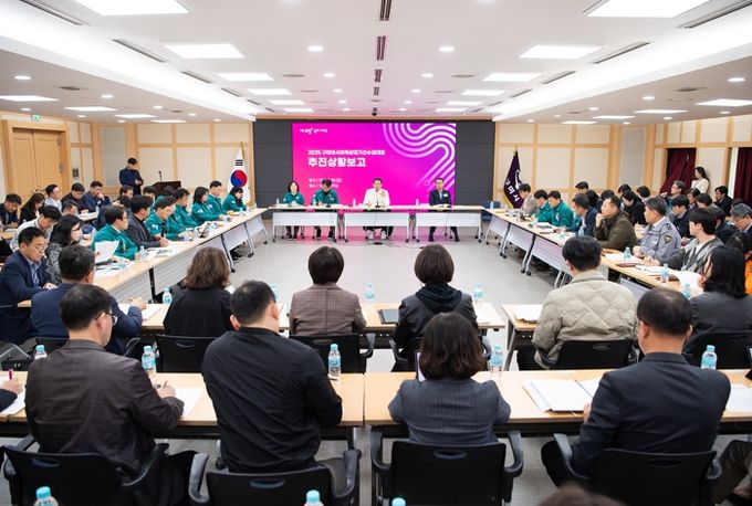 이날 보고회는 시청 대회의실에서 전 부서장 및 구미경찰서, 구미소방서, 구미교육청 등 유관기관 관계자 100여 명이 참석한 가운데 성공적인 대회 개최를 위한 막바지 점검을 위해 진행됐다.