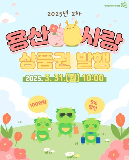 (아름다운교육신문) 서울 용산구가 지역 경제 활성화를 위해 오는 3월 31일 오전 10시, 총 100억 원 규모의 ‘용산사랑상품권’을 추가 발행한다.