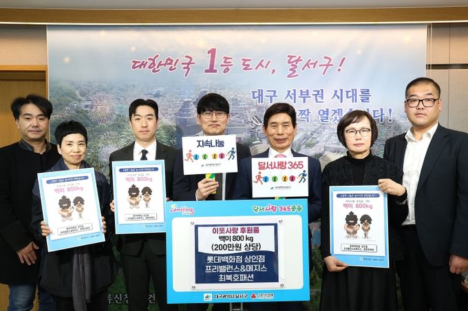 (아름다운교육신문) 대구 달서구는 롯데백화점 상인점, 프리밸런스 & 메지스, 최복호패션으로 부터 관내 어려운 이웃들에게 지원해달라며 백미 800KG(200만원 상당)을 기탁 받았다고 30일 밝혔다.