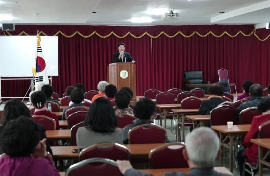 이날 오 시장은 행복한 노후를 위해 당진시가 추진하는 노인복지 정책을 소개하고, 즐겁고 건강한 노후설계를 위한 경제적 안정과 치매 예방의 중요성을 설명했다.