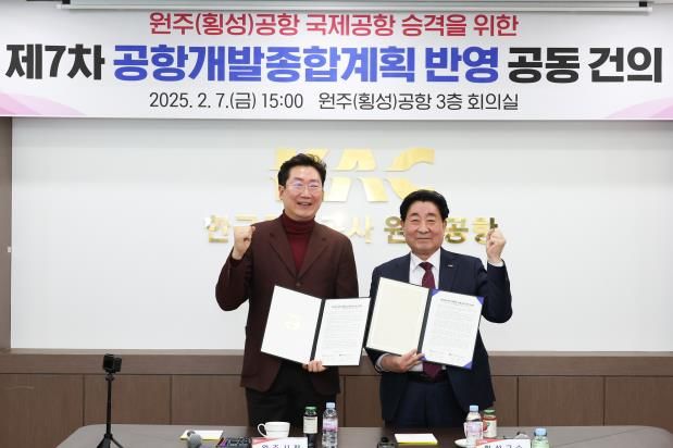 원강수 원주시장과 김명기 횡성군수는 “원주(횡성)공항의 미래발전전략인 ‘국제선 유치여건 조성방안’에 적극 협력해 주시는 강원특별자치도에 진심으로 감사드린다.”라며, “제7차 공항개발 종합계획에 원주시민과 횡성군민의 열렬한 염원과 의지를 반드시 반영해 원주·횡성의 동반성장과 지역경제 활성화는 물론 강원권 전체의 발전으로 이어질 수 있도록 최선을 다하겠다.”라고 말했다.