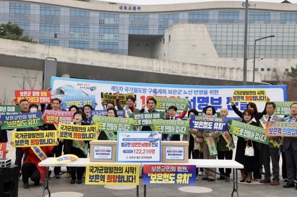 한편, 보은군은 지난해 11월 철도 유치위원회를 발족 10만인 서명운동을 추성공적으로 추진했으며, 앞으로도 철도유치를 위해 국회토론회, 철도 유치 관련 시·군과 공동결의문, 홍보부스 운영 및 캠페인 등에 행정력을 집중해 보은군민의 강력한 열망과 의지를 보여줄 계획이다.