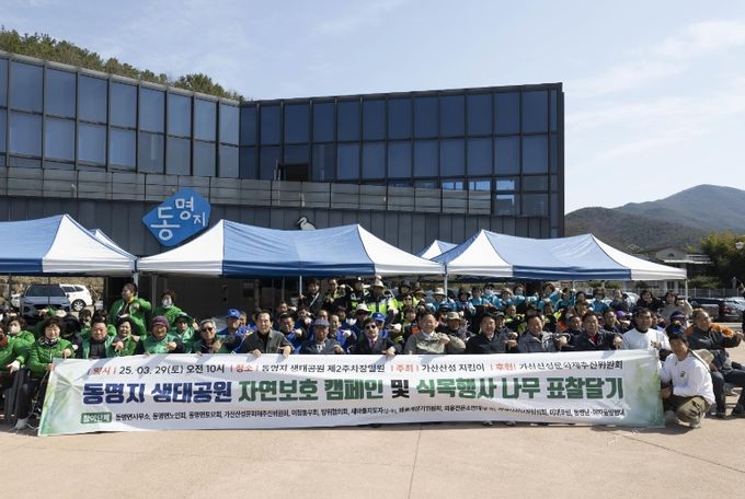 (아름다운교육신문) 칠곡군은 지난 29일 동명지 수변생태공원 일원에서 각 사회단체 회원들과 함께하는 자연보호 캠페인 및 나무표찰달기 행사를 진행했다.