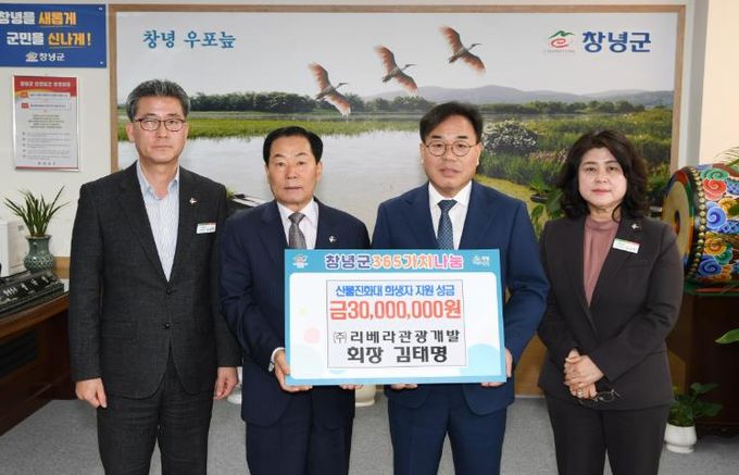 (아름다운교육신문) 창녕군은 31일 ㈜리베라관광개발에서 창녕군 산불진화대 희생자 지원을 위해 성금 3천만 원을 기탁했다고 밝혔다.