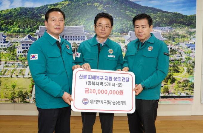 이번 성금은 최근 발생한 경북 안동, 청송, 영양, 영덕, 의성 등 주요 산불 피해 지역의 조속한 복구와 이재민 지원을 위해 대구시 9개 구청장·군수들이 뜻을 모아 마련했다.