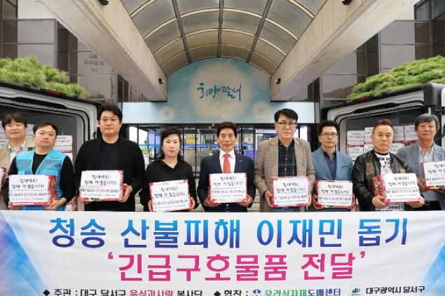 (아름다운교육신문) 대구 달서구는 달서구 음식과 사랑봉사단으로부터 산불피해지역에 지원해 달라며 긴급구호 물품(라면, 생수 등) 500만원 상당을 기탁 받았다고 31일 밝혔다.