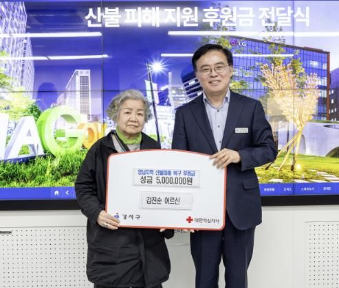 진교훈 구청장은 “어려운 일이 있을 때마다 나눔을 실천해오신 김진순 어르신께 깊이 감사드린다”며 “구에서도 산불 피해 지역 이재민들이 하루빨리 일상으로 돌아갈 수 있도록 지원을 아끼지 않겠다”고 말했다.