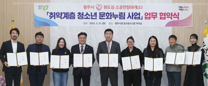 (아름다운교육신문) 청주시는 31일 취약계층 청소년의 문화 향유 기회를 확대하고 원도심 문화예술의 거리를 활성화하기 위해, 원도심 소공연장 8개소와 ‘청소년 문화누림 사업’ 업무협약을 체결했다.
