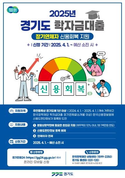 (아름다운교육신문) 경기도가 4월 1일부터 ‘2025년 학자금대출 장기연체자 신용회복 지원’ 접수를 시작한다.